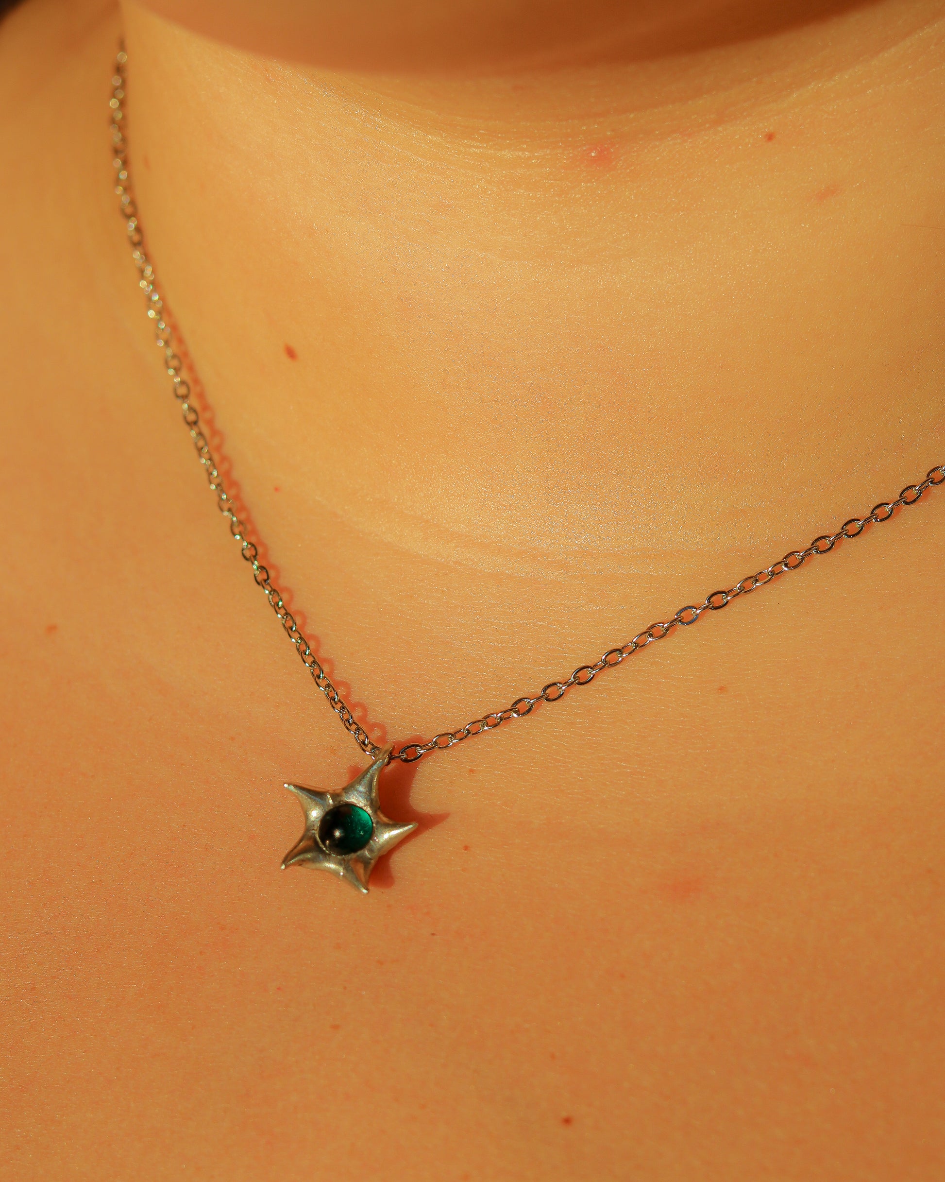 Handmade star necklace made with a vintage glass gem and lead free jewelry solder. Chain is stainless steel.