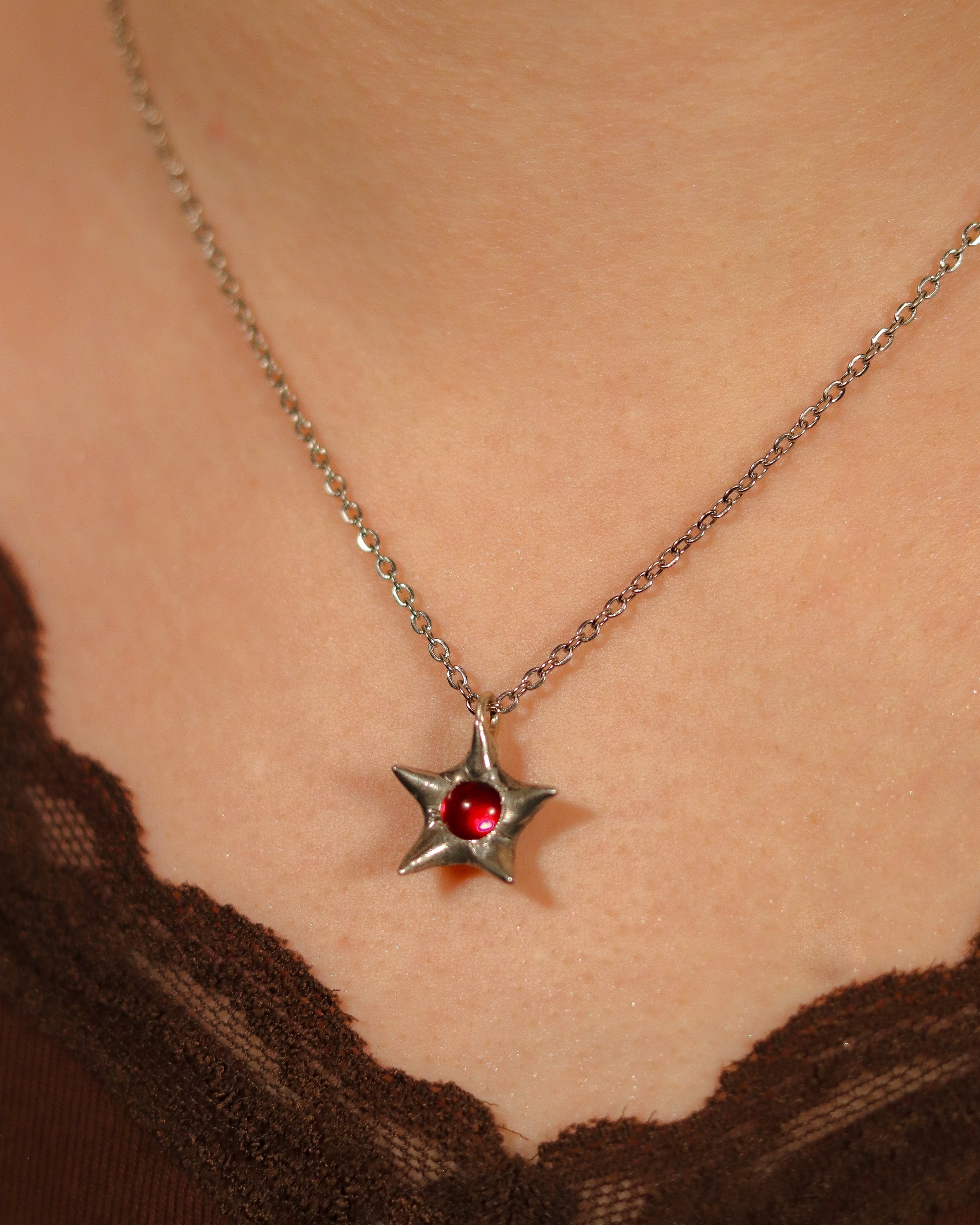Handmade star necklace made with a vintage glass gem and lead free jewelry solder. Chain is stainless steel.